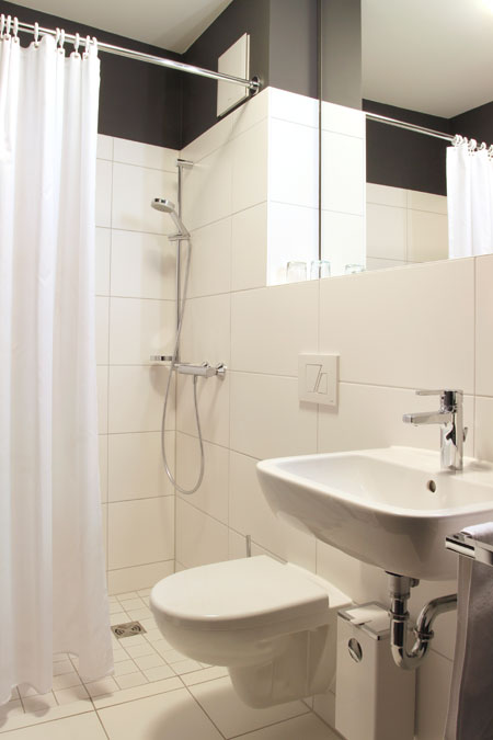 The rooms of the second building in the Kraut narrow street 15 are also equipped stylish and modern. On each floor you can find two rooms: one double and one single room. Using the external stairs you can find a cosy apartment with a small terrace and a kitchen inside on the fourth floor of the building.